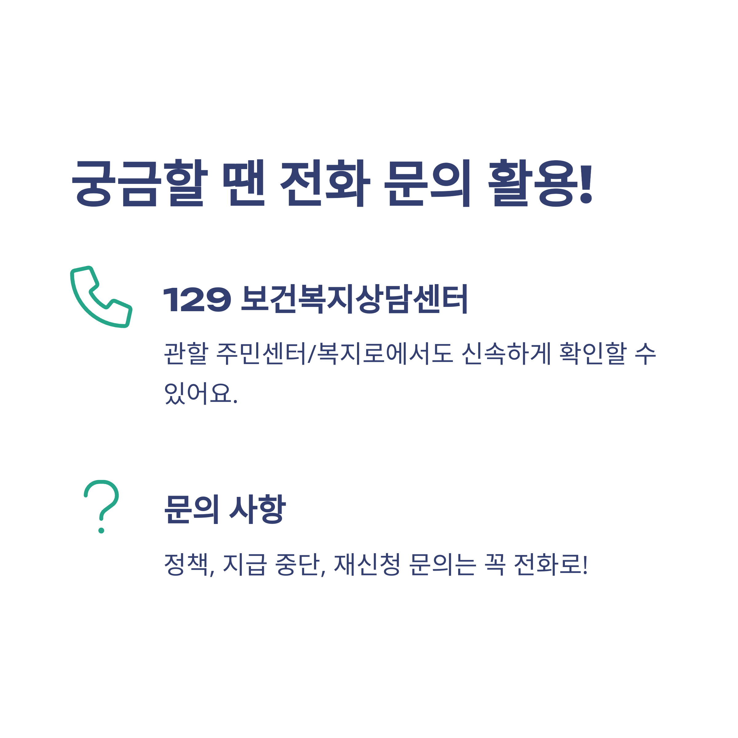 정책 문의나 지급 확인은 전화가 가장 빠르고 정확합니다.