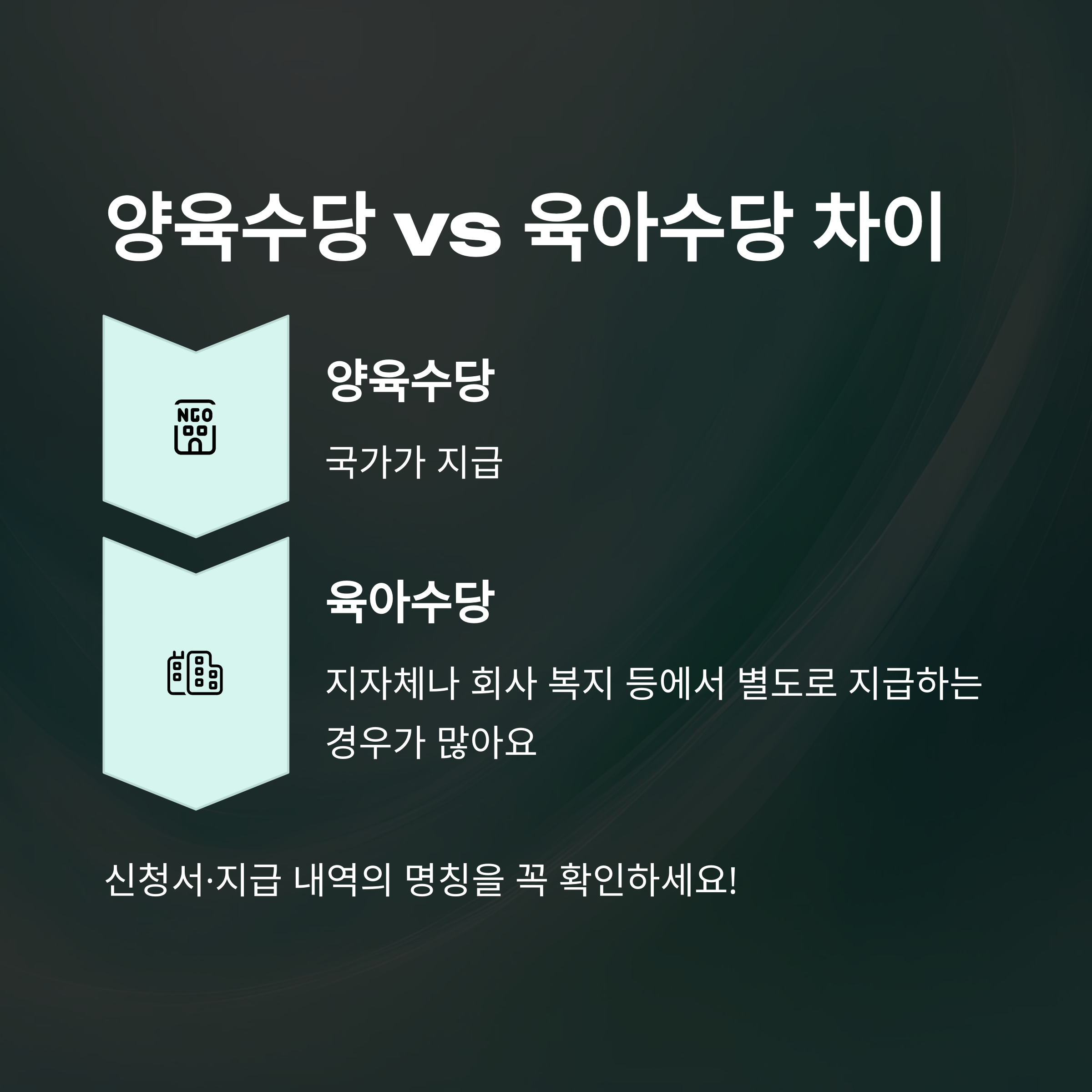 | 육아수당 | 지자체/기업 등 자체 지급 | 명칭·지급 조건 다양 |