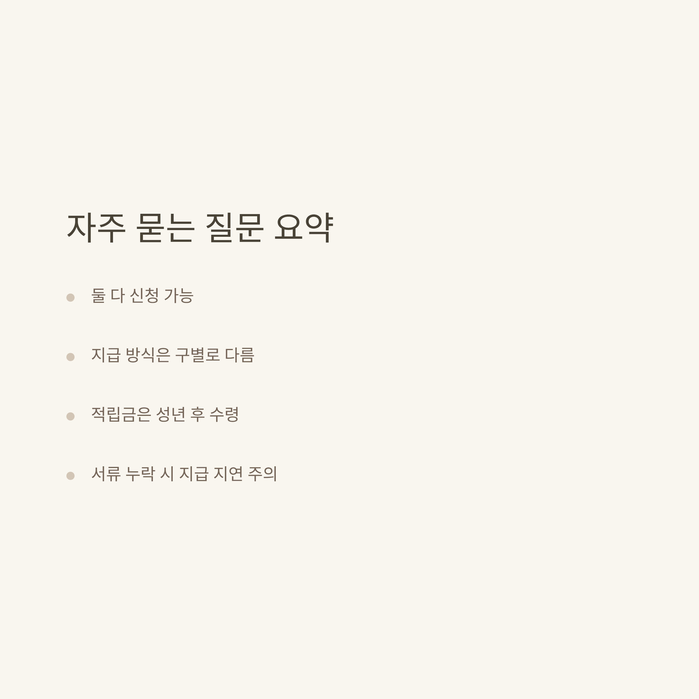 | 아이꿈수당 | 등본, 계좌, 신분증 | 별도 신청, 중복 가능 |