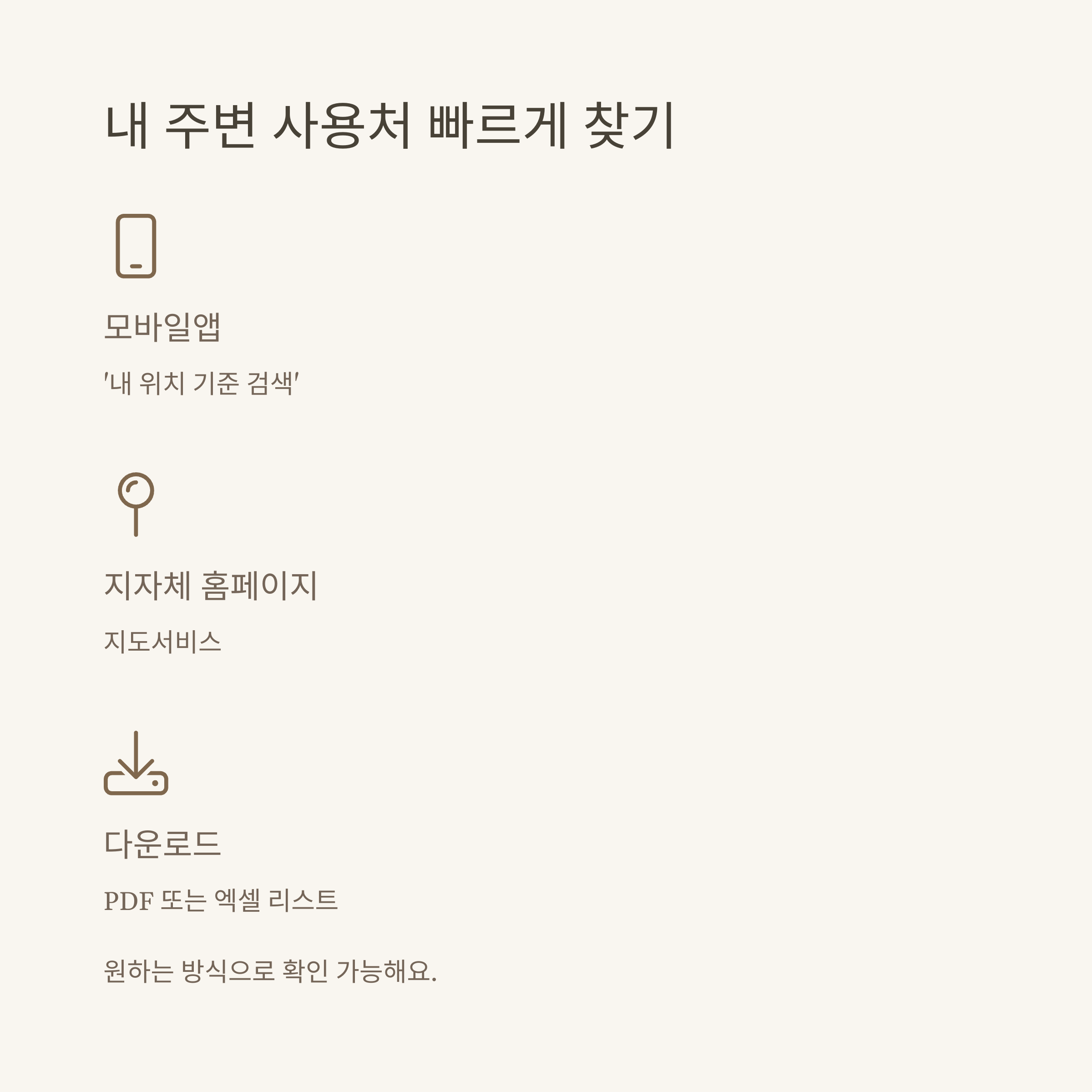 | 지자체별 사용처 리스트 | 동네 상권·테마별 엑셀/PDF 파일 제공 | 주기적 업데이트 |