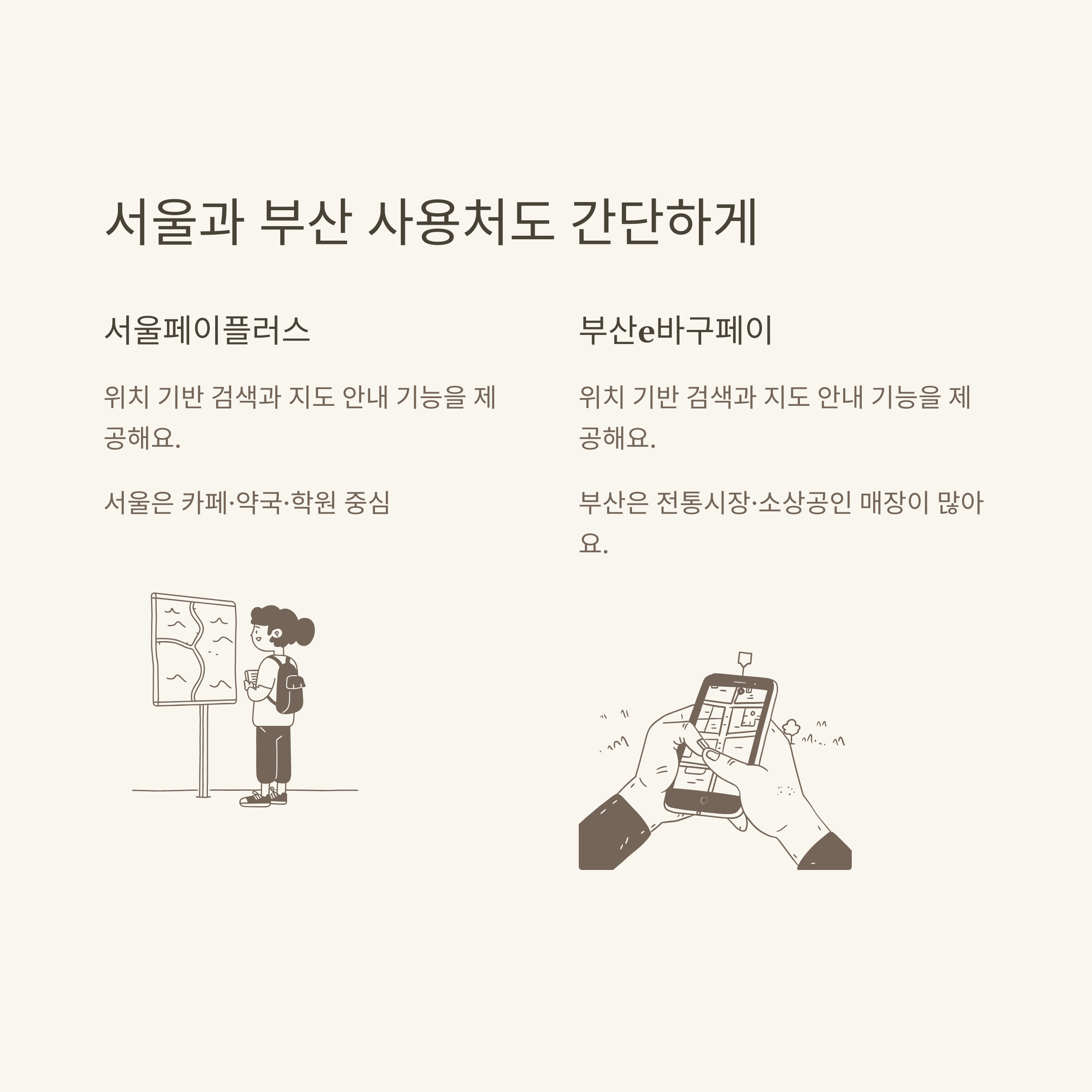 서울페이플러스(seoulpay.or.kr)는 모바일앱, 홈페이지 모두에서 ‘내 주변 사용처 찾기’ 기능이 잘 정비되어 있고, 부산의 부산e바구페이(busanhanpay.busan.go.kr)도 시·구·동별 검색과 지도 기반 서비스를 제공합니다.