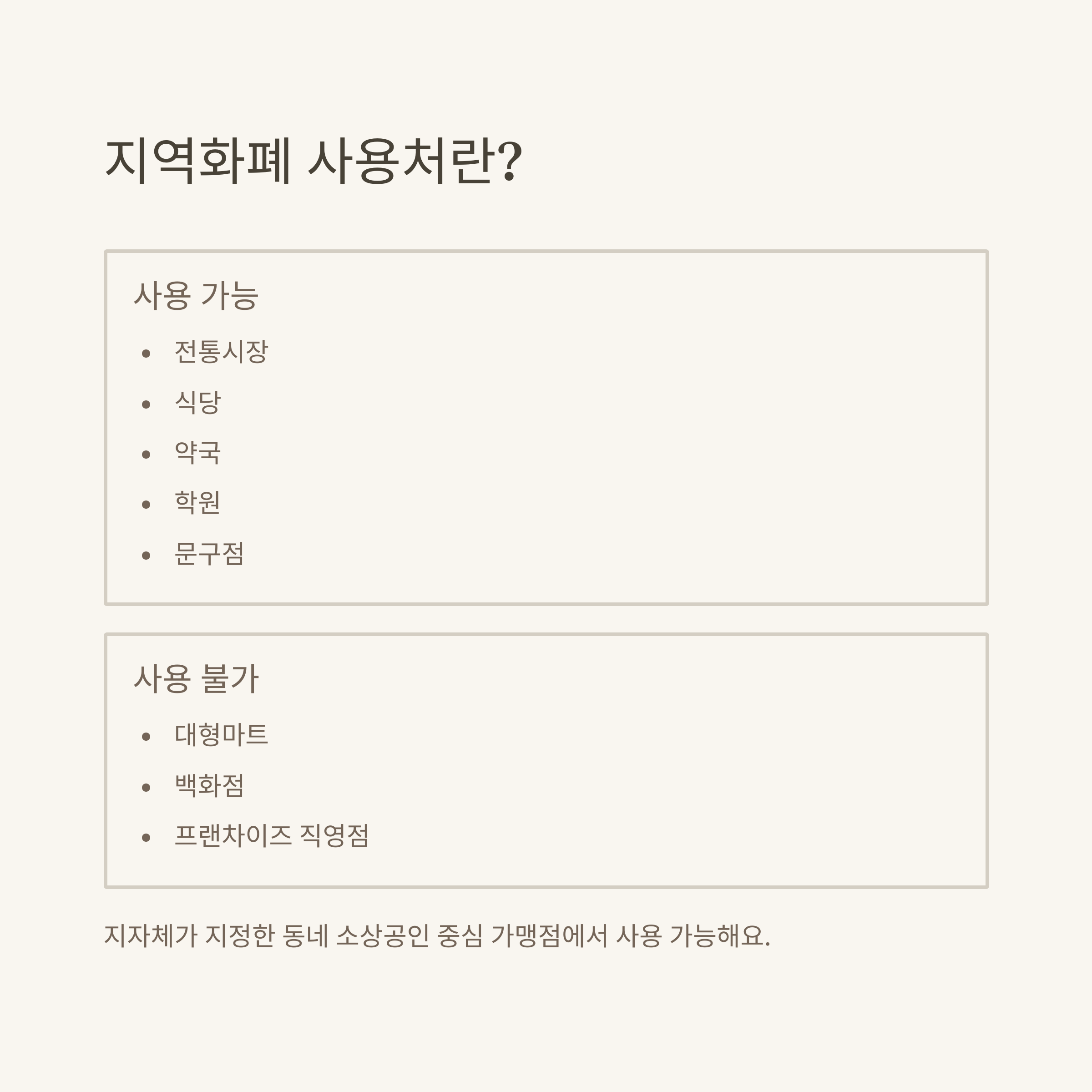 | 주요 사용처 | 전통시장, 동네마트, 식당, 카페, 약국, 학원 등 |