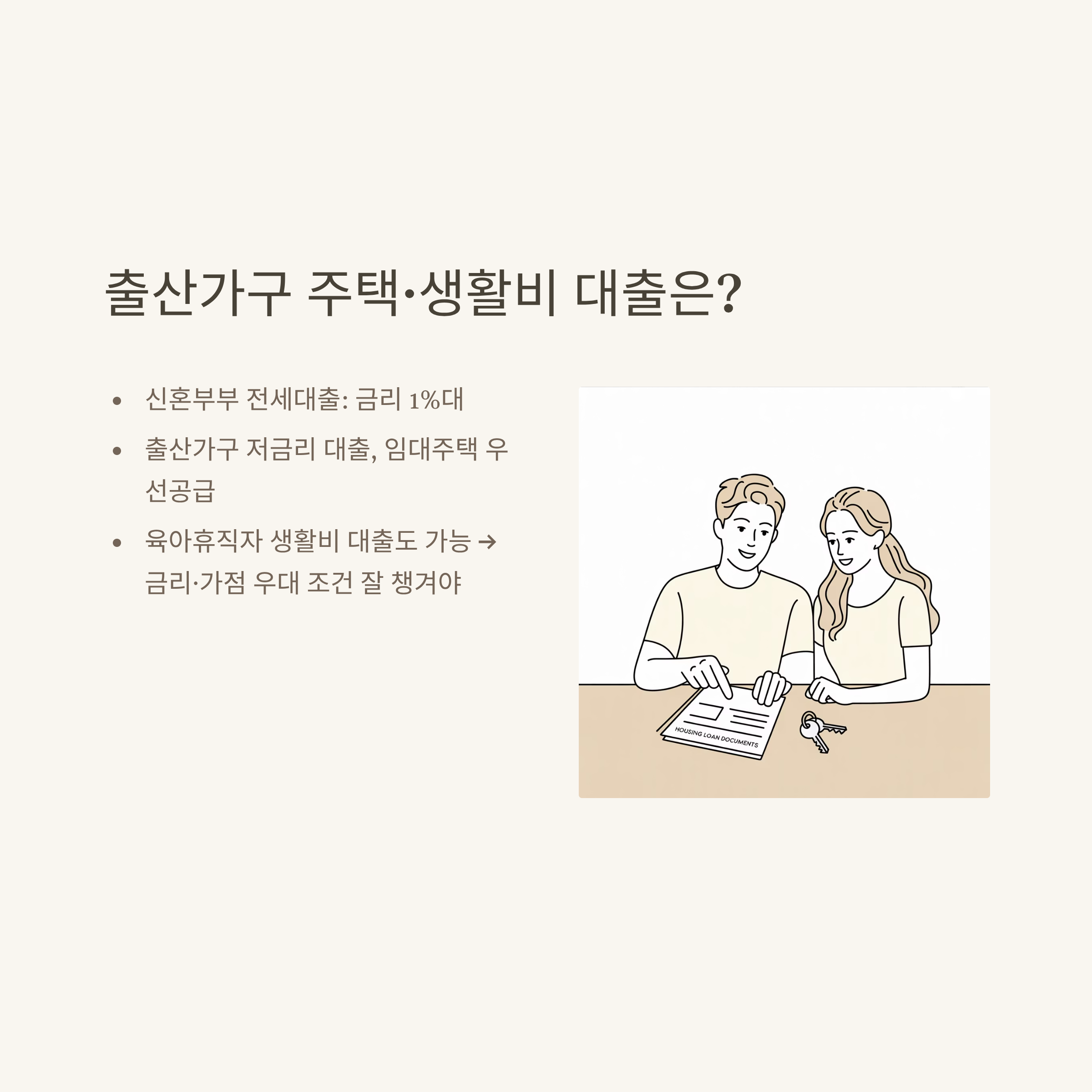 | 주택·생활대출 | 신혼부부 전세대출, 임대주택 우선공급 등 |